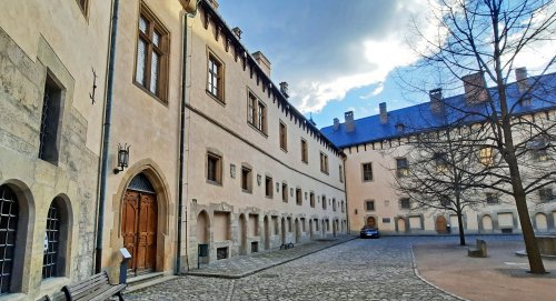 V rámci výroční členské schůze, které se konala 19. 2. 2022 (více o schůzi v článku VČS 2022), mohli všichni zúčastnění členové pobočky i hosté schůze navštívit Vlašský dvůr a absolvovat organizovanou prohlídku zdejších expozic a zejména nové stálé expozice mincovny. To vše díky tomu, že na vzniku expozic spolupracoval člen pobočky Jiří Hána. Ten na tomto úkolu pracoval již od roku 2018 v rámci širšího realizačního týmu pod režií Západočeského institutu pro archeologii, o.p.s. Nemalý podíl Jiřího Hány spočíval především v přípravě podkladů pro části expozice shrnující vývoj mincovnictví před velkou mincovní reformou krále Václava II., podílel se i na realizaci prezentující tuto mincovní reformu zavádějící pražský groš, a také na expozici tzv. mincovního volantu podávajícího přehled vývoje mincovnictví na českém území od Keltů až po současnost. Další úloha Jiřího Hány spočívala ve výběru mincí pro expozici, jež ukazuje průřez kutnohorskou mincovní produkcí od založení zdejší mincovny v roce 1300 až po ukončení její činnosti roku 1727, a pracoval také na návrhu obsahu části expozice představující výrobní proces mincovny, tedy cestu drahého kovu od dolů k pregéřské stolici. Práce na nové stálé expozici byly dokončeny již v závěru roku 2020, avšak mimořádná protiepidemická opatření související s pandemií onemocnění Covid-19 umožnila její slavnostní otevření a zpřístupnění expozic veřejnosti až v polovině června 2021. Tato nová expozice má název „Královská mincovna“ a představuje ucelený pohled na vznik a vývoj královské mincovny v Kutné Hoře. Další prohlídkový okruh se jmenuje „Královský palác“, ten návštěvníky provede audienční síní a královskou kaplí, a také tzv. „filmovými ateliéry“ představujícími významné události spojené s českými panovníky a jejich pobytem v Kutné Hoře. Na chodbách městského úřadu, který se rovněž nachází v prostorách Vlašského dvora, jsou k vidění medailonky významných kutnohorských osobností. Poslední expozicí je „Záhada ztraceného stříbra“ pojatá jako hra pro dětské návštěvníky ve sklepeních pod mincovnou.